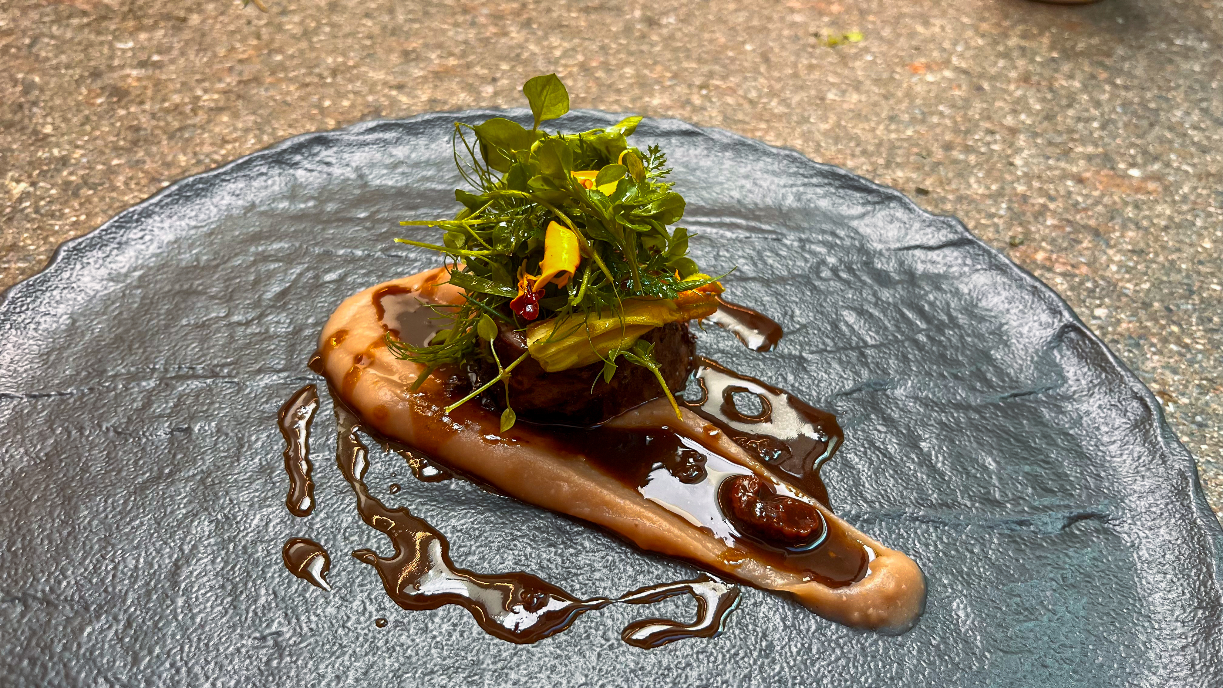 - Servire con crema di maroni di Drena e fondo di cervo.
