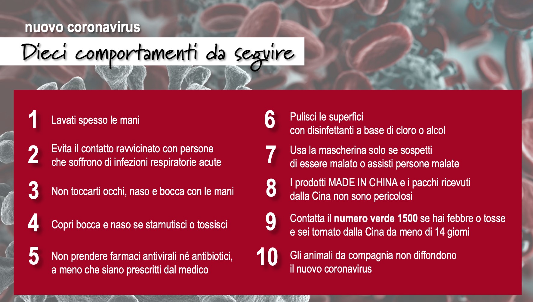 CORONAVIRUS - IL DECALOGO DEL MINISTERO DELLA SALUTE