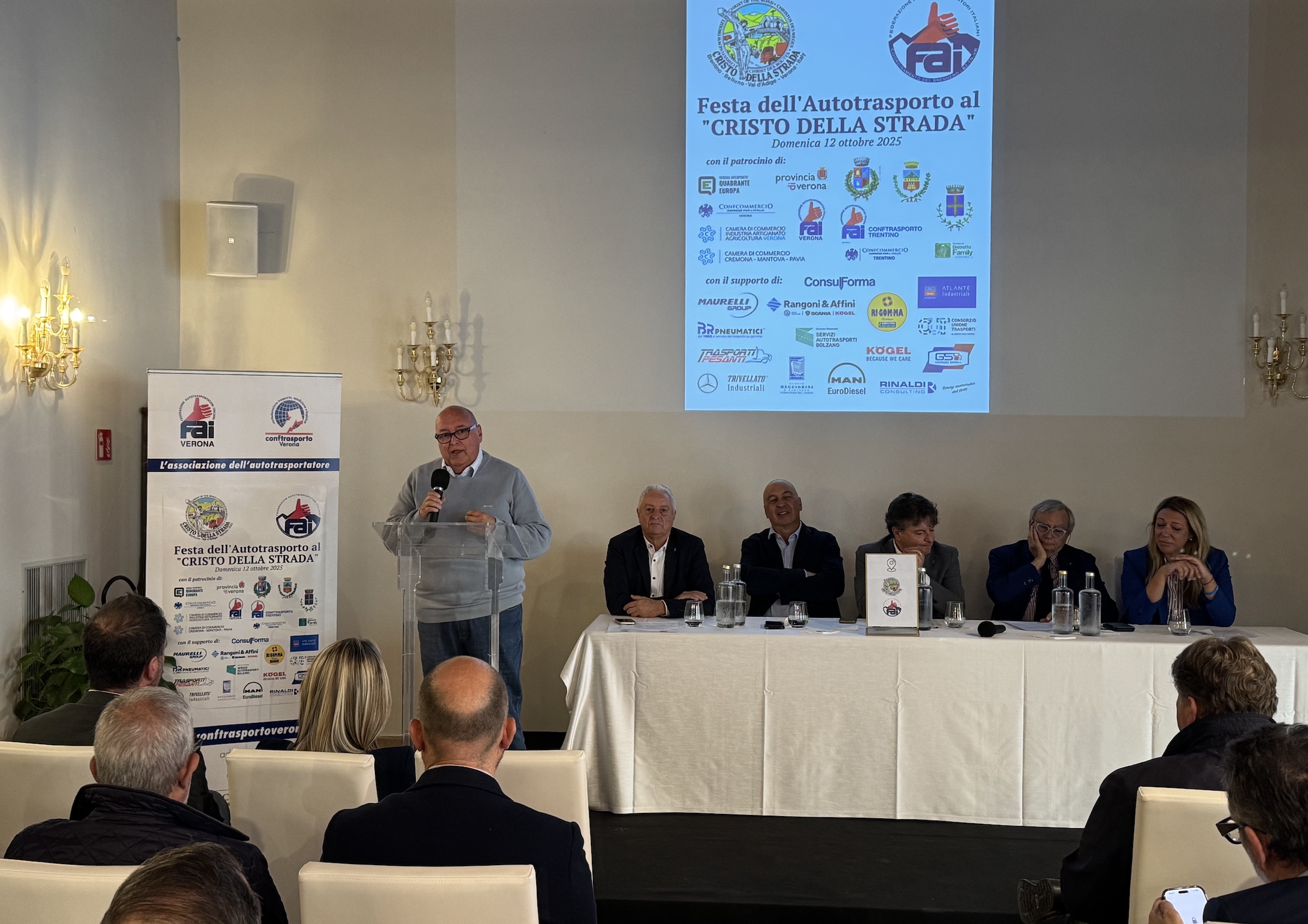 In questa suggestiva location, alla presenza del presidente Nazionale FAI Paolo Uggè e al segretario generale FAI Carlotta Caponi è stato presentato il “Documento politico dell’Autotrasporto”, frutto del lavoro congiunto fra il Coordinamento e le imprese associate. Un documento che raccoglie proposte concrete su alcune delle sfide attuali e cruciali per il settore: la carenza di autisti e il ricambio generazionale, la transizione ecologica e la decarbonizzazione, la semplificazione normativa come leva di competitività per le imprese, la permeabilità dei valichi, la richiesta di infrastrutture (la Valdastico è stata citata e richiesta a gran voce), le aree di sosta per i mezzi pesanti e, naturalmente, la sicurezza stradale e la valorizzazione del lavoro su gomma. Un vero e proprio atto di responsabilità. Un contributo concreto, consegnato direttamente alle autorità presenti, tra cui gli eurodeputati Paolo Borchia, Flavio Tosi, oltre al candidato presidente regione Veneto on. Alberto Stefani, per dare forza ad un dialogo costruttivo, serio e continuativo tra il mondo dell’autotrasporto e le istituzioni. Presenti inoltre numerosi sindaci della zona veronese e trentina fra cui il sindaco di Avio Ivano Fracchetti. Si è voluto sottolineare quanto questa attività sia strategica per il sistema paese, per la sua economia e competitività.
