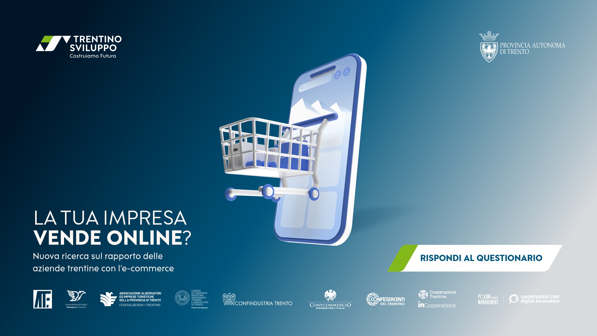 Il futuro del commercio passa dal digitale e il Trentino si prepara a guidare questa trasformazione. Trentino Sviluppo, gli enti e le associazioni di categoria del territorio, in collaborazione con l’Osservatorio eCommerce B2c del Politecnico di Milano, hanno avviato un’indagine dedicata all’analisi quantitativa e qualitativa del commercio elettronico per le imprese della provincia di Trento.