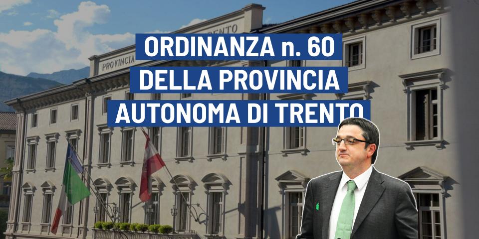 IL PRESIDENTE della Provincia di Trento, nella serata di oggi ha adottato l’ ordinanza n. 60 recante misure per la prevenzione e gestione dell’emergenza epidemiologica da Covid-19.