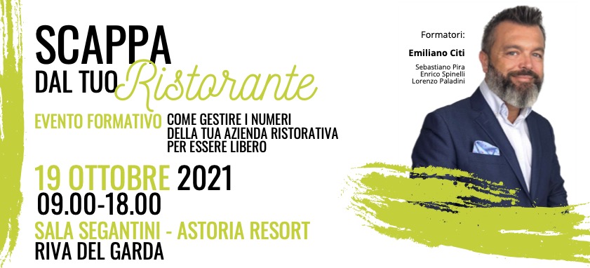 Gestire i "numeri" dell'azienda senza subirli, per essere liberi. In sintesi è questo l'obiettivo di "Scappa dal tuo ristorante", l'evento formativo organizzato dall'Associazione ristoratori Alto Garda e Ledro, in collaborazione con l'Associazione pubblici esercizi e Ristobusiness, che si terrà a Riva del Garda, presso l'Astoria Resort, il 19 ottobre prossimo, dalle 9 alle 18.