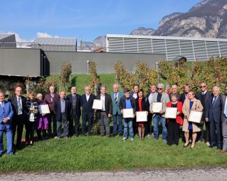 Alle cantine Mezzacorona la consegna degli attestati agli imprenditori con 25, 40 e oltre 50 anni di lavoro